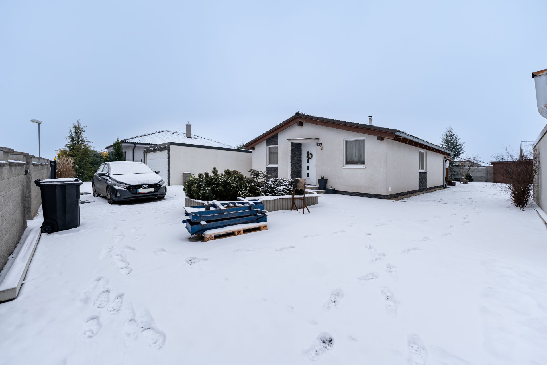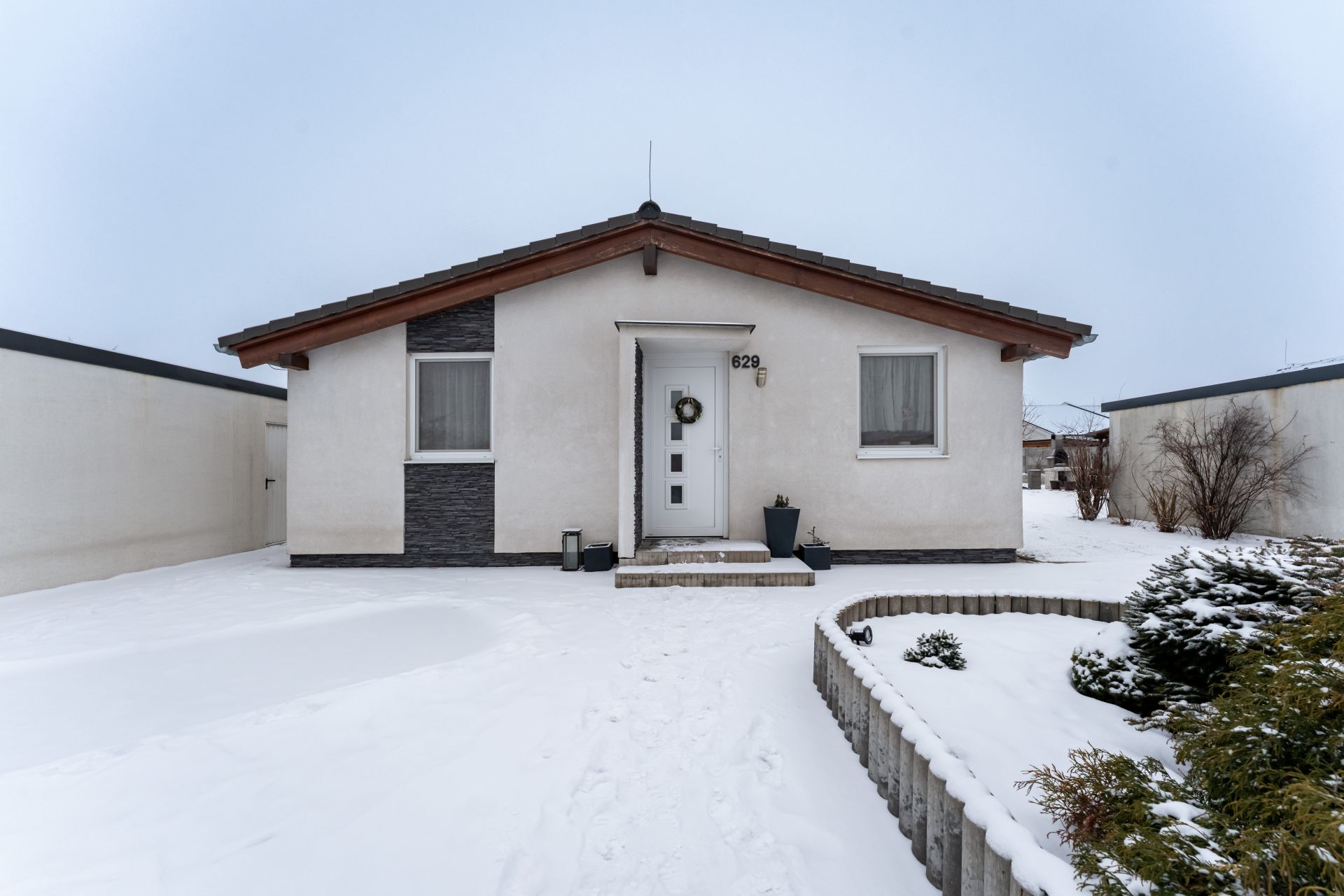 Jedná sa o samostatne stojacu jednopodlažnú stavbu so sedlovou škridlovou strechou, situovanú v novovzniknutej tichej obytnej zóne. V celom dome je podlahové kúrenie, pričom podlahy sú pokryté plávajúcou podlahou a keramickou dlažbou. Na chodbe sa nachádzajú veľké vstavané skrine a ďalšie rolldoor skrine sú v každej spálni, čo zaručuje dostatok úložného priestoru.
