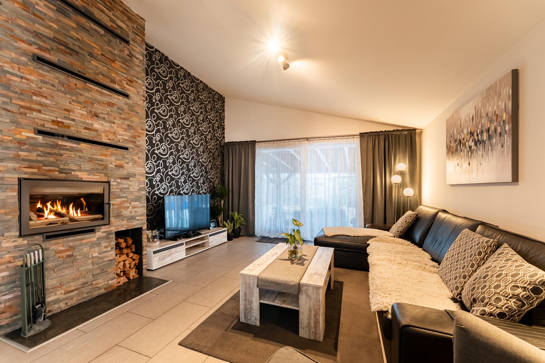 Kuchyňa je vybavená kuchynskými spotrebičmi, pričom umývačku riadu si majiteľ ponechá, ale nová chladnička môže zostať vo výbave kuchyne za poplatok. Rodinný dom je v ponuke čiastočne zariadený, alebo podľa dohody. Obývačka disponuje zabudovaným krbom na drevo, ktorý dotvára príjemnú atmosféru.